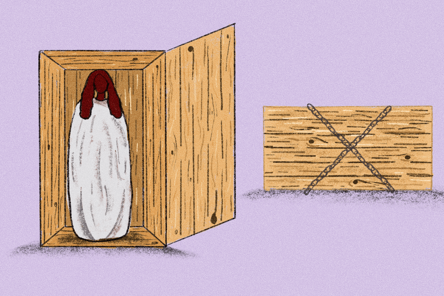 To end the trick, the magician wheels the boxes back together, says a few magic words, opens the lid, and allows one assistant to climb out unscathed while the other pulls their feet back in and remains hidden inside the box.