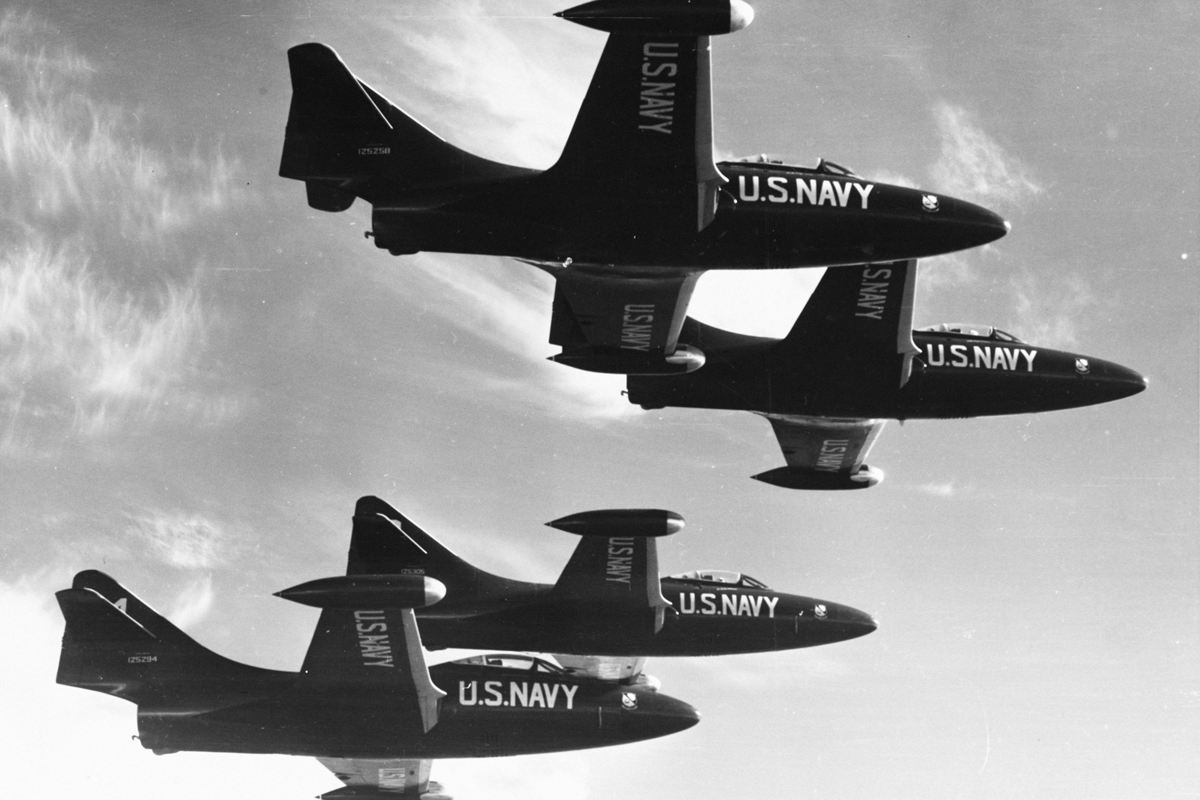 After World War II, naval aviation was no longer commanding headlines for its wartime missions, and the program was facing the possibility of major budget cuts. This gave Navy Commander LeRoy “Roy” Simpler an idea: He reasoned that exhibitions of flying prowess could provide a morale boost and promotional benefits for the division. The idea found support in the Navy ranks, and Lieutenant Commander Roy “Butch” Voris was chosen to lead the initial five-man team of aviators.