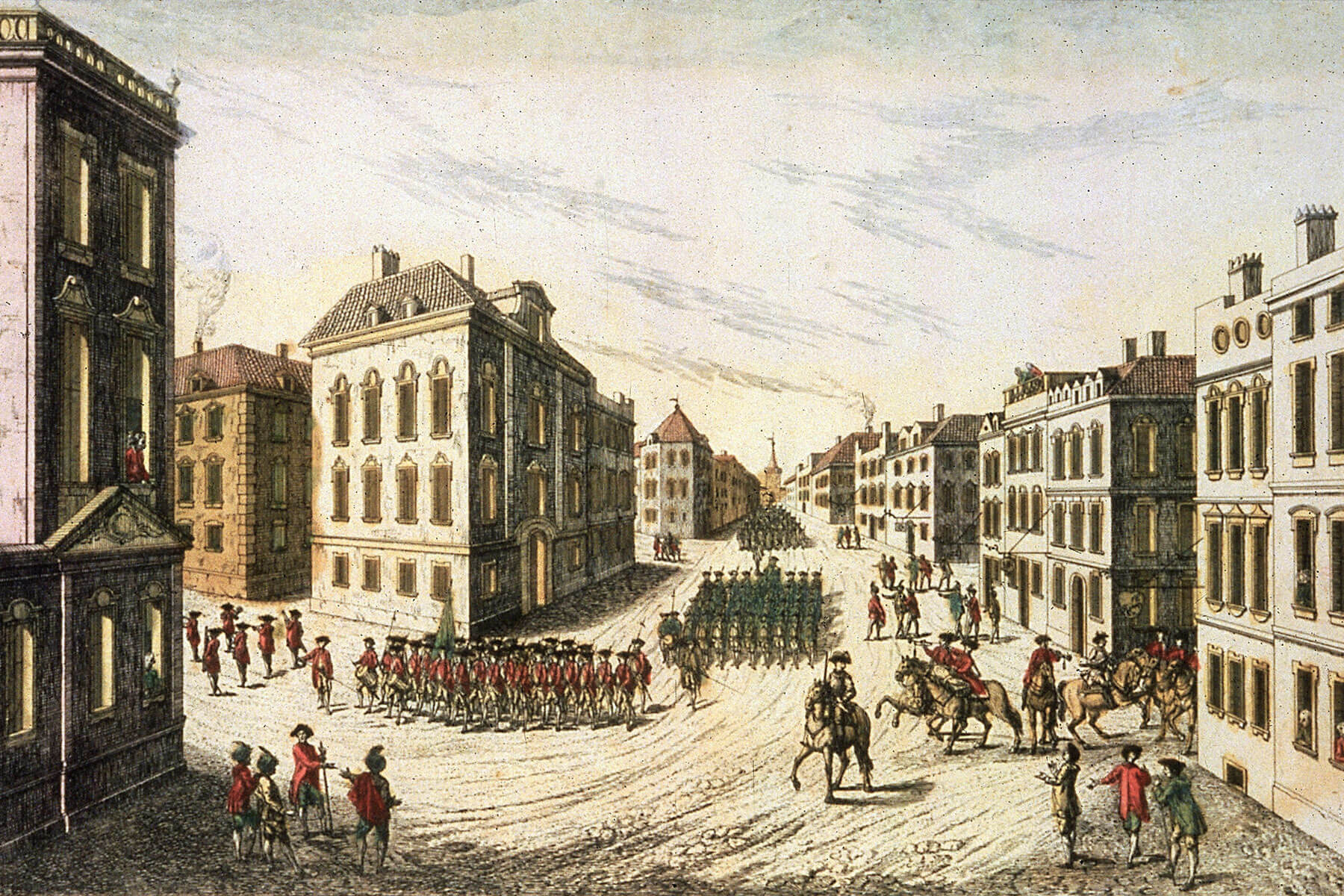 The Dutch constructed modest red tile-roofed brick and stone buildings, warehouses to support the fur trade, a church, and thatch-roofed wooden homes, in the style of a small European village. They also built a series of walls bordering the settlement in order to protect it against attacks — the street that was originally adjacent to one of the walls is known today as Wall Street.