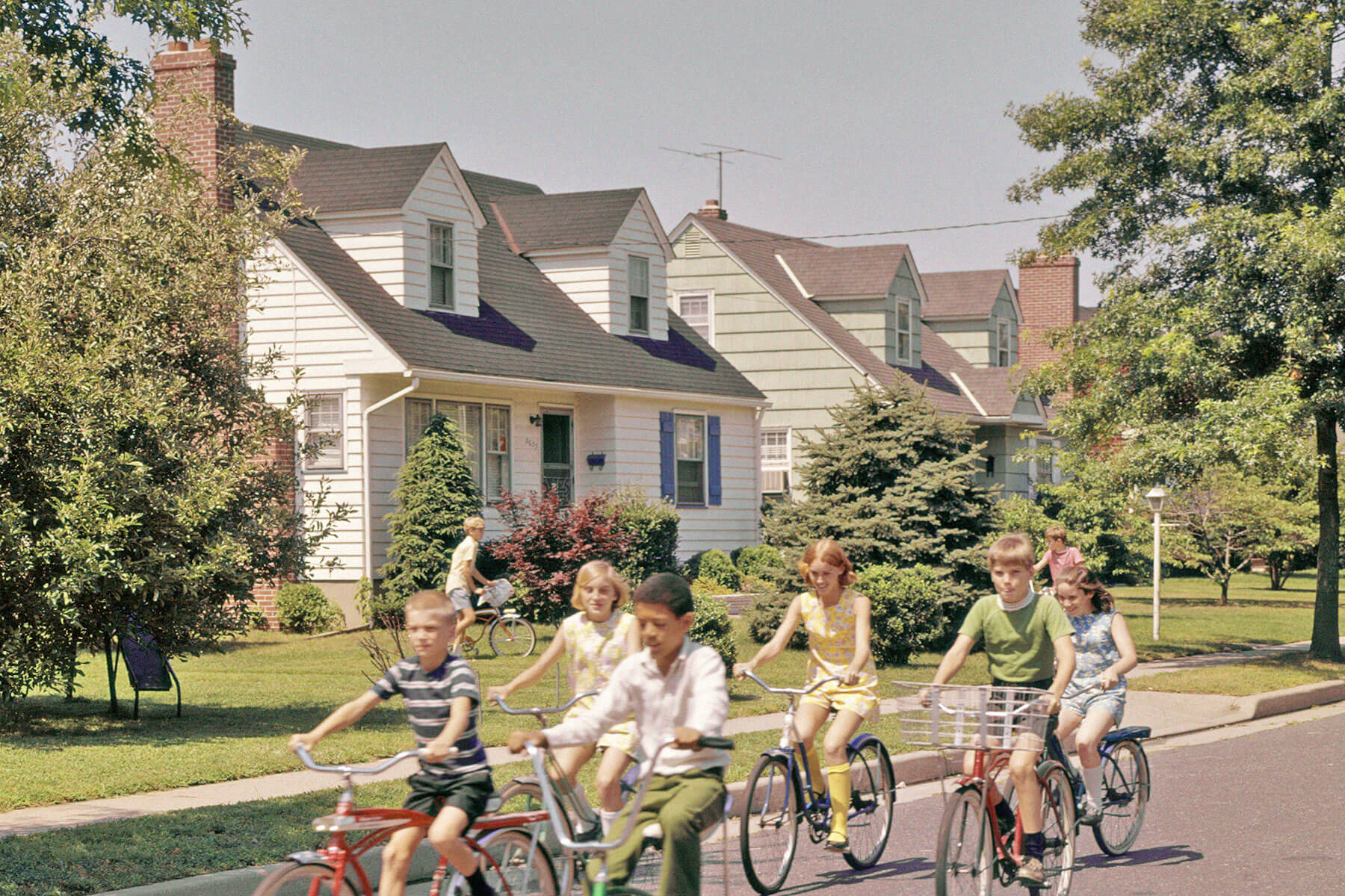 At the onset of the baby boom, the housing stock was still in a state of stagnation due to the wartime conservation of building materials. As a result, in 1947, 6 million households saw families sharing living space with extended relatives, and approximately 500,000 households were living in make-do spaces such as detached garages, trailers, or otherwise temporary housing. But a few key programs reshaped the housing market: the Servicemen’s Readjustment Act (better known as the GI Bill), Veterans Administration (VA) home loans, and the already-established Federal Housing Authority (FHA).