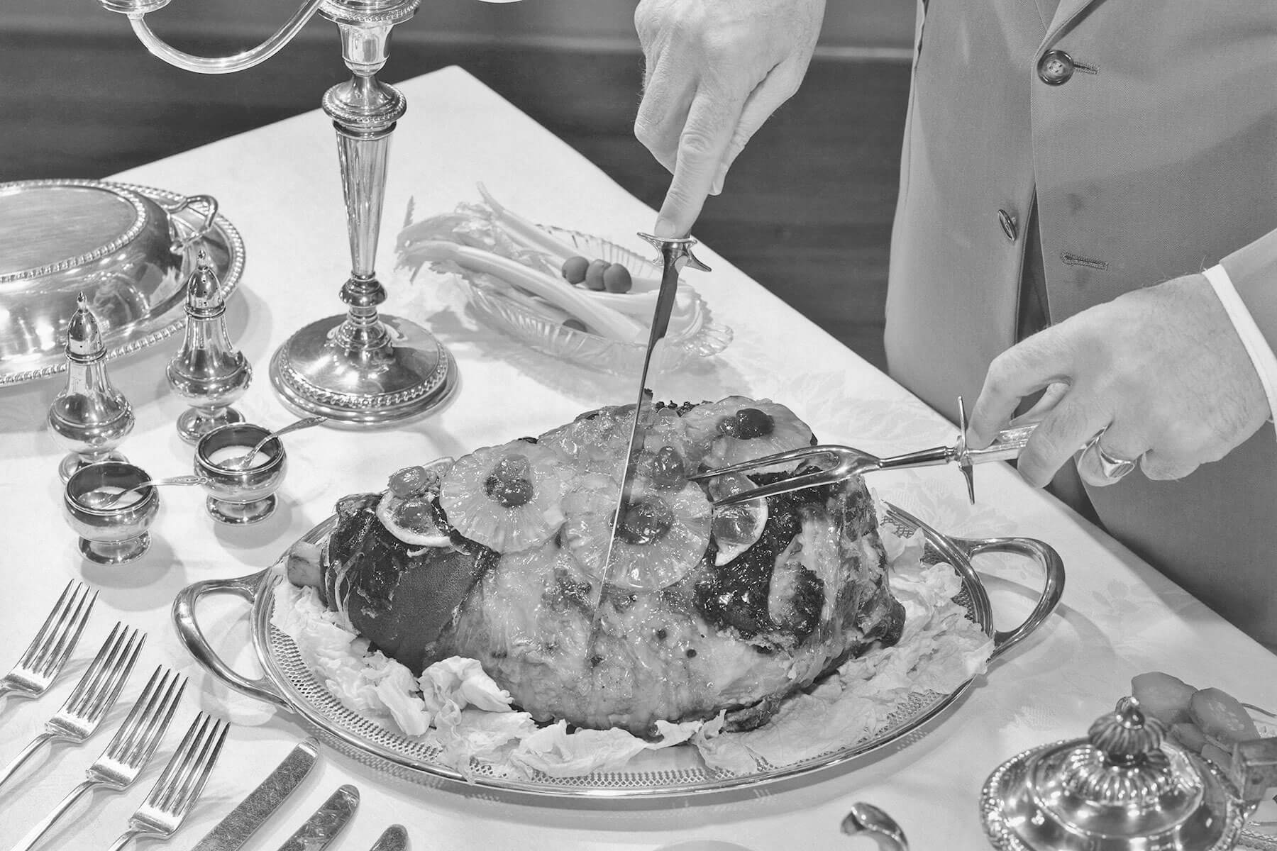 F. Scott Fitzgerald’s The Great Gatsby focused on the wealthy elite of New York’s Gilded Age, describing buffet tables overflowing with hors d’oeuvres and spiced baked hams. But meats weren’t just for the rich, and in the 1920s, a baked ham or other large cut of meat was a common sight at family meal time, especially during holidays or as the centerpiece of a Sunday dinner.