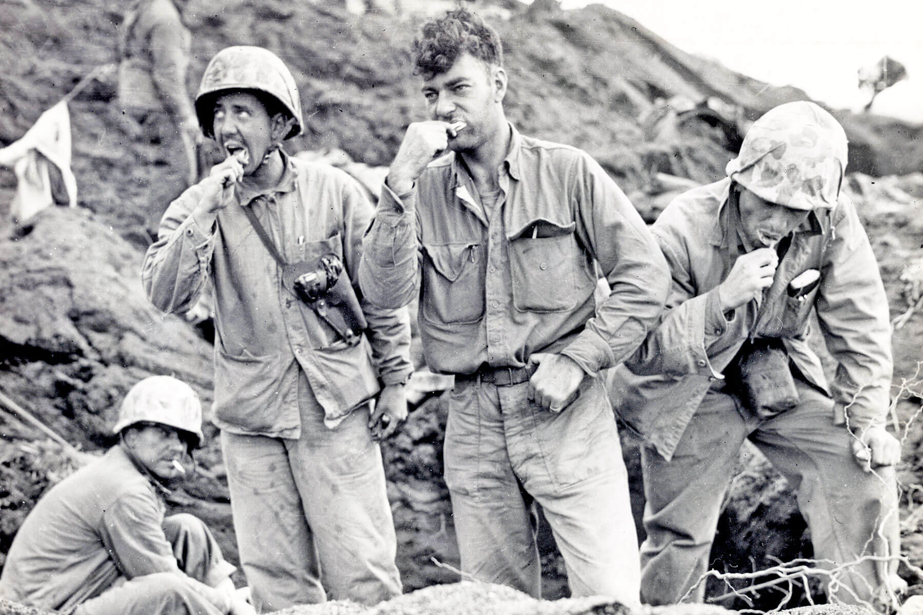 WWII Marines brushing teeth