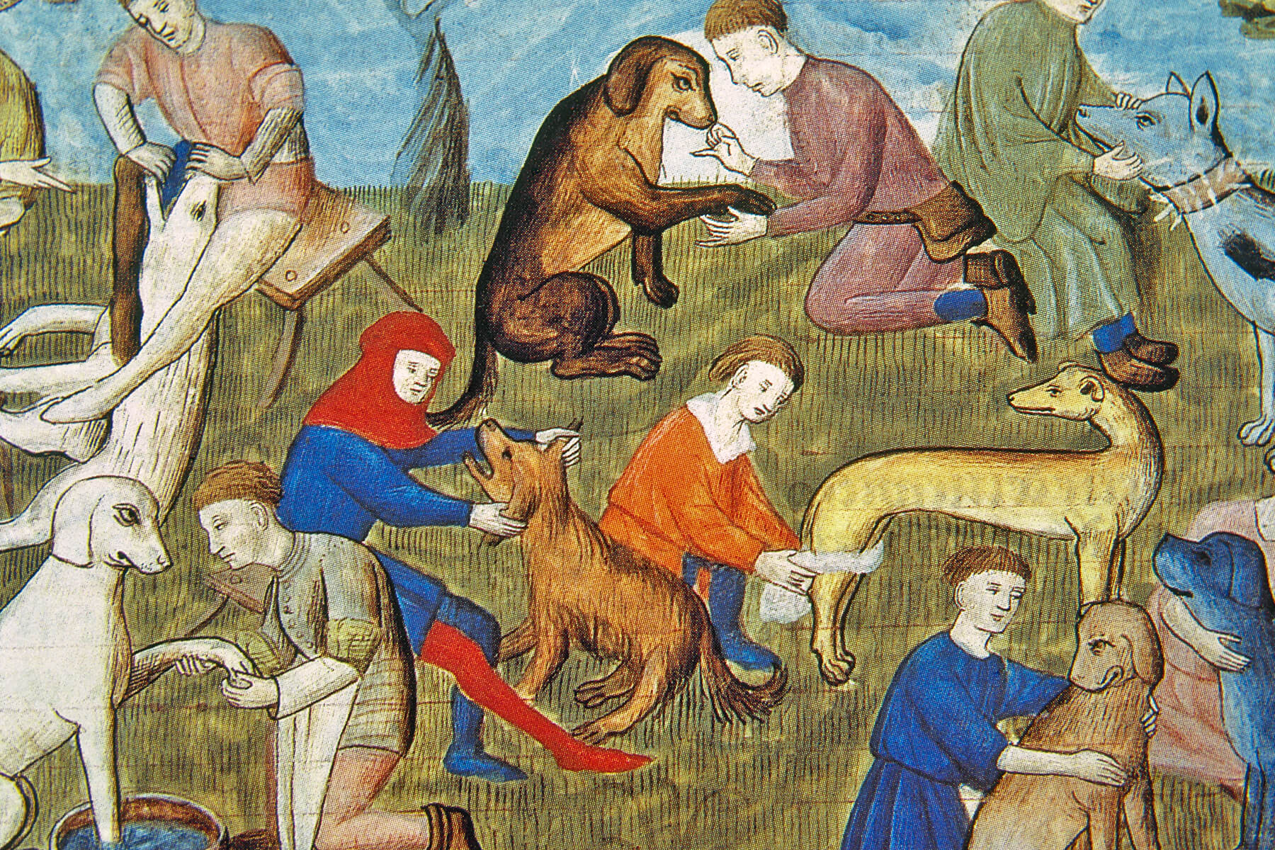Alongside their eternal nemeses cats, dogs are the most popular pets in the world. They have been humans’ most faithful friends for at least 12,000 years, hunting with us, protecting us, and accompanying us in our everyday lives. In fact, dogs were the first domesticated animals, predating chickens, cows, goats, pigs, sheep, and even agriculture itself. By the medieval era, they were firmly embedded in homes across the world. They could be found walking alongside peasant poachers as they went out to hunt, or curled up at the feet of the greatest kings and queens of Europe.